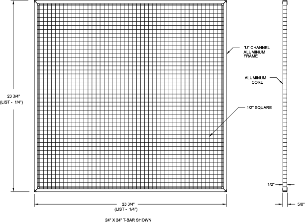 1/2” x 1/2” x 1/2” core design with U-channel frame