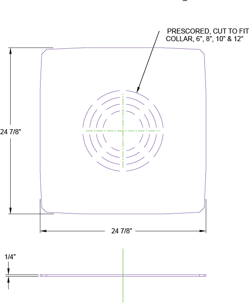 Pre-scored for 6, 8, 10, and 12-inch holes